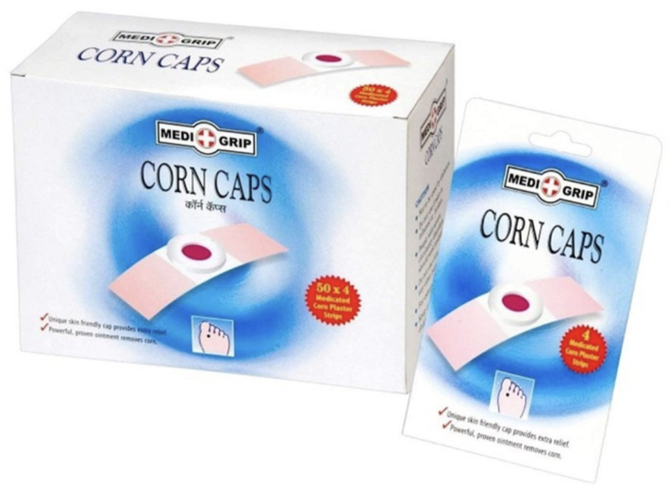 Corn caps usually contain salicylic acid in strengths of 10%, 20%, or 40%, depending on the severity of the corn. The medicated pad softens the hard skin by breaking down keratin, making it easier to remove the corn while cushioning the area to reduce pain from friction. While effective, users should be cautious not to apply corn caps on broken or infected skin, and people with diabetes or poor circulation should only use them under medical guidance to avoid complications.