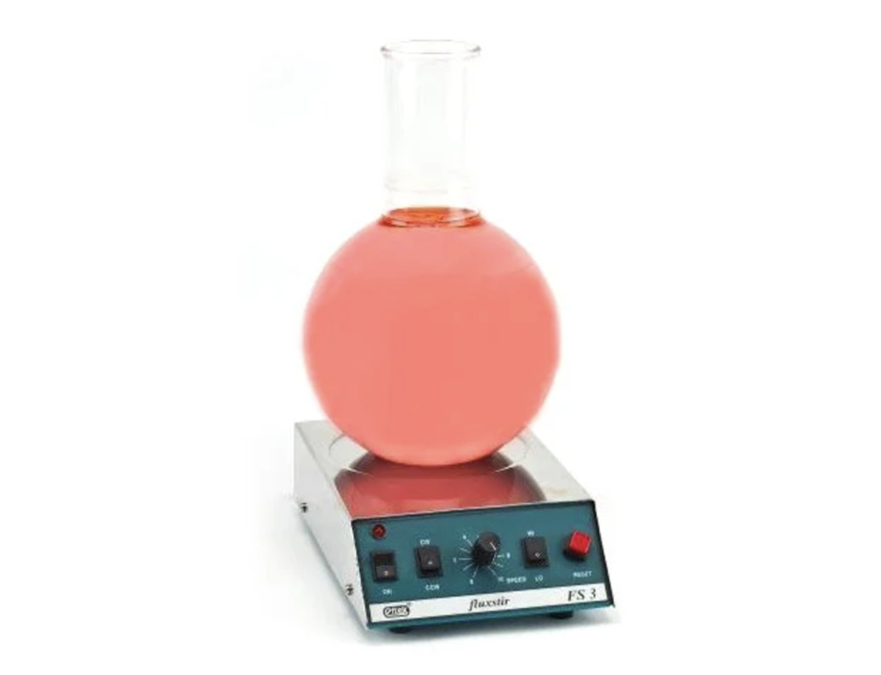 A magnetic stirrer is a lab tool used to mix liquids using a magnetic field. Instead of stirring by hand with a glass rod, a small coated magnetic bar (called a stir bar) is placed in the liquid. The device has a rotating magnetic field generator that makes the stir bar spin, mixing the liquid smoothly and evenly.